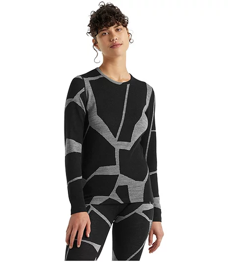 A super-warm Icebreaker merino base layer top with a unique jacquard-patterned fabric, the 250 Vertex Long Sleeve Crew-Neck top is a go-to layering piece for skiing, snowshoeing and other cold-weather pursuits. Made from supersoft and breathable merino wool, it has gusseted underarms to increase range of motion. Flatlock stitching and offset seams throughout make for a friction-free next-to-the-skin feel.