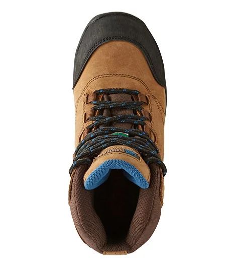 From Kodiak, the women’s Journey hiker-style work boots are made of waterproof leather, protected with molded TPU heel guards and rubber toe guards. Fitted with composite toes and plates, they are electric shock resistant as well as puncture resistant. Designed for winter outdoor work, the boots have lightweight Thinsulate™ insulation. EVA midsoles add support and Kodiak® Ultimate rubber outsoles are slip and oil resistant. CSA-compliant safety features include composite toes and plates, electric shock resistance and puncture resistance.