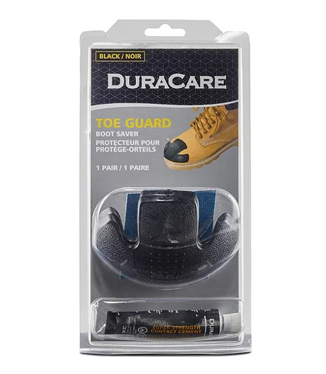Help your boots last a lot longer when you apply these DuraCare toe guard boot savers. The plastic material is easy to apply over the toes of your footwear using the adhesive provided with the guards. You simply prepare the toe surface using the provided sandpaper which allows the guards to adhere securely.