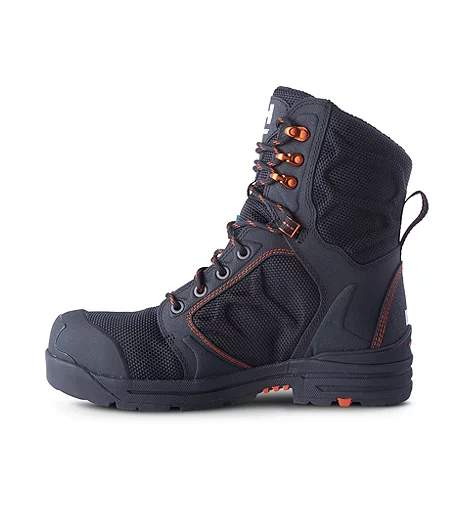 An ultra-light eight-inch boot from Helly Hansen, this design has a nylon upper protected with a TPU toe cap. For safety, the boots are equipped with aluminum toes and composite plates. These men’s work boots feature breathable, moisture-wicking linings to keep your feet dry. Lightweight EVA midsoles and removable high-cushioning foam support your feet comfortably during long shifts.