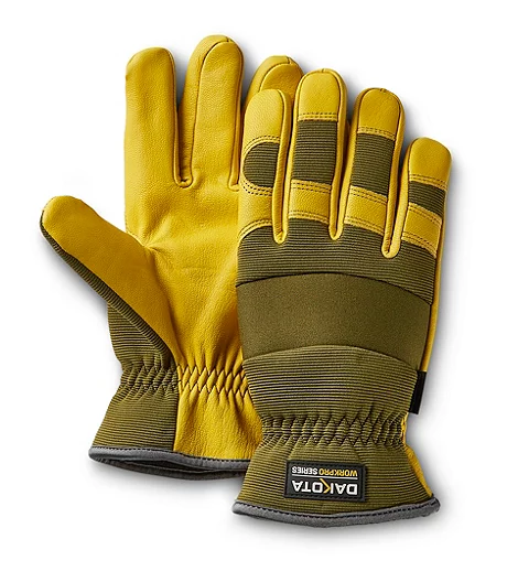 From our Dakota WorkPro Series, these men’s Goatskin Dexterity gloves are designed for tough outdoor work and feature full grain leather palms for durability. Breathable Spandex material across the backs of the gloves and comfortable elastic cuffs provide a personal, flexible fit. T-MAX® Insulation provides maximum warmth and comfort.