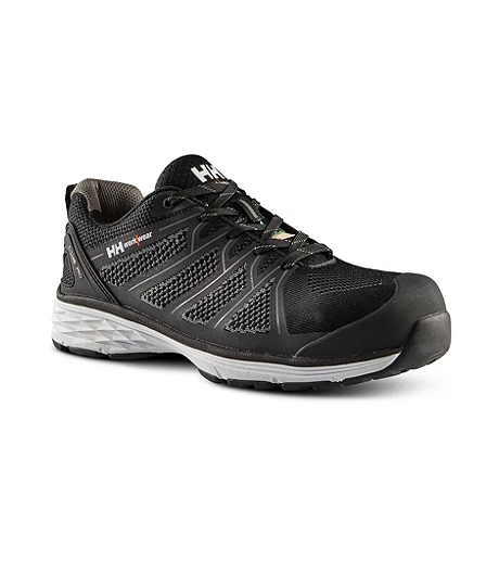 These Helly Hansen Workwear athletic-style shoes feature aluminum toes and composite plates. They are resistant to puncture and electric shock. They have knit fibre uppers with welded TPU overlays for added protection. Featuring C-Zone compression-molded EVA midsoles plus an additional comfort layer, these work shoes will keep your feet well supported and protected throughout your shift.