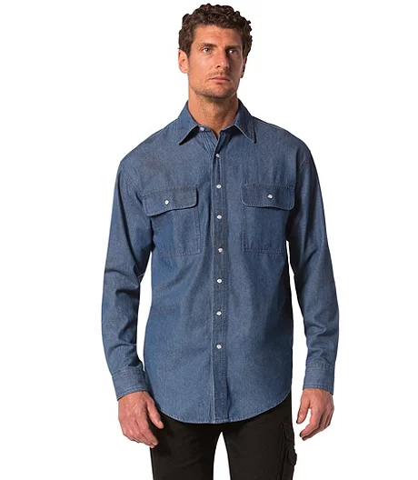 There’s always a place in your wardrobe for a classic denim work shirt like this one from Dakota. Made with all-natural cotton, it’s been washed and preshrunk for a more comfortable feel and a cool worn-in look. The left chest pocket includes a pencil stall to help you stay organized on the job, while the front placket is lined behind the metal snaps for extra comfort.