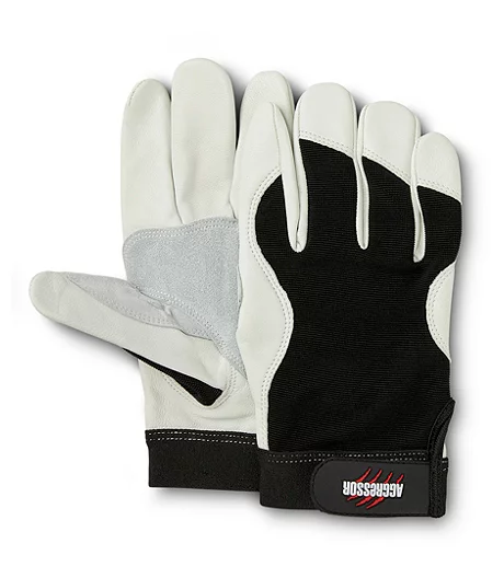 Built tough to withstand the rigours of everyday wear, these Aggessor work gloves are made of full-grain leather. Elasticated wrists reinforced with Velcro straps ensure that debris stays out.