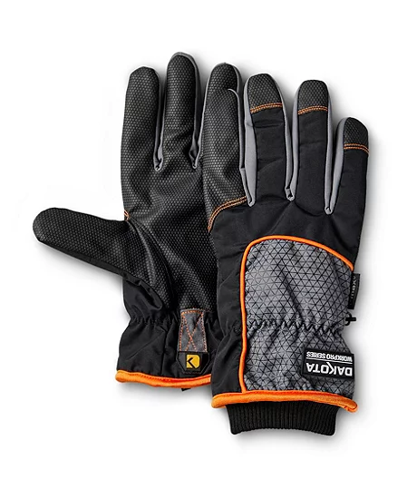 Our signature technologies keep your hands warm and dry in these Dakota Workpro Series winter work gloves. T-MAX® insulation provides maximum warmth along with superior comfort and HYPER-DRI® membranes prevent liquid penetration. These gloves offer Taslon wind resistance and textured palms to provide added grip.