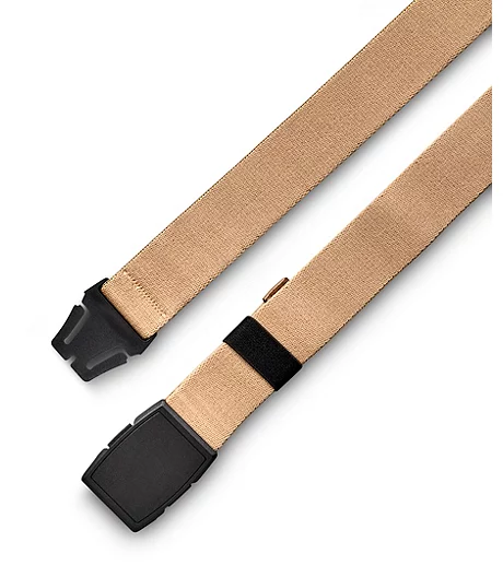 A great choice for travelling, this woven web belt has a buckle that will get you through security without removal. The easy snap-close design can be adjusted to size.