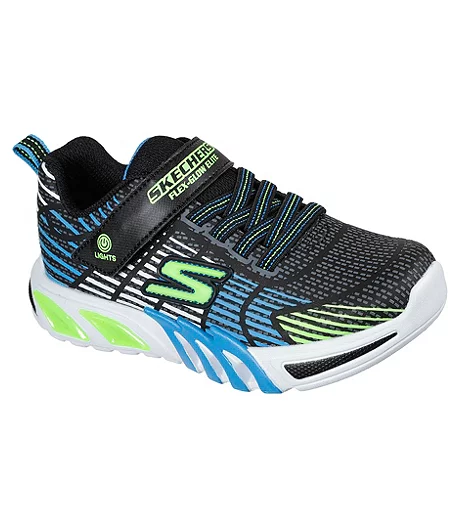 Help him stand out in cool style and comfort wearing the Skechers S Lights®: Flex-Glow Elite shoes. These sporty light-up sneakers feature an athletic mesh and synthetic upper with a multicolour design. He’ll be comfortable in these shoes with their shock-absorbing midsoles and cushioned insoles.