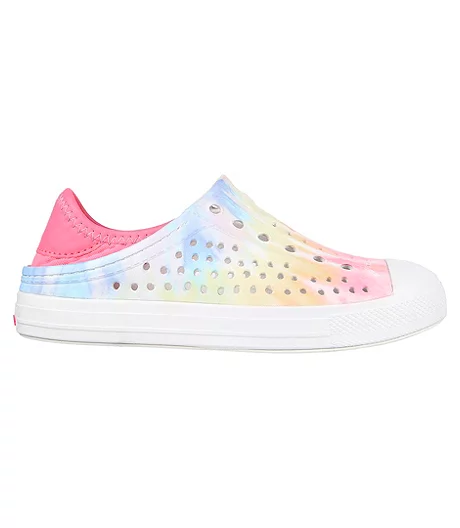 Give her some super groovy style with easy wearing comfort in the Skechers Guzman Steps shoe. The slip-on casual sneaker has an EVA upper with a colourful tie-dye print and all-over sculpted detail with cooling perforations. There’s a flexible soft neoprene collar for added comfort.