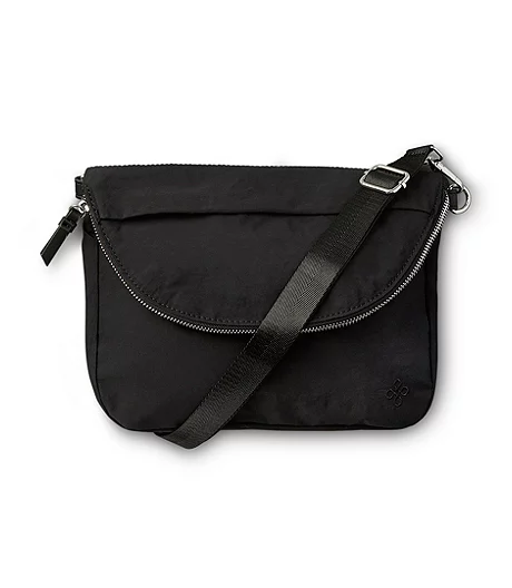 From Shambhala, a cross-body bag in nylon with silvertone metal hardware. The strap is adjustable for personal comfort. This bag has a hidden zippered pocket where you can safeguard important cards and other essentials.
