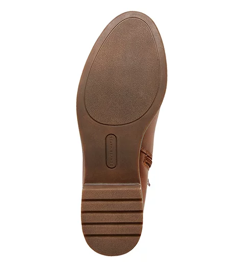 From Denver Hayes, these Edana boots have gold-tone buckles that highlight the wrap-around strap detail. Inside zippers make them easy to get on and off and flexible TPR outsoles make for light footfalls on hard surfaces.