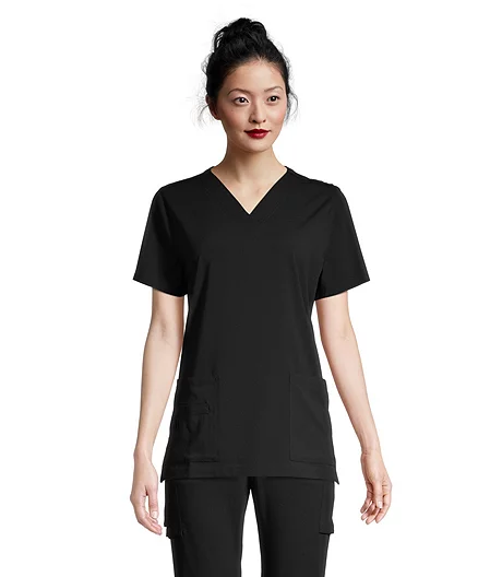 From our Health Pro Heart collection, this scrub top is simply sophisticated for a professional look. It features five front pockets to keep your everyday essentials at your fingertips. A bungee loop and pen pocket add practicality.