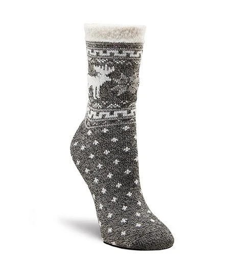 A knitted moose pattern highlights these double-knit socks from our WindRiver Heritage Collection. The supersoft lining makes these socks warm and cozy.