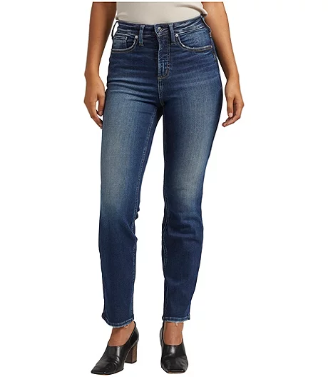 Silver Jeans’ innovative and flattering Infinite Fit High Rise Straight Leg Jeans stretch to fit up to four sizes. These stretchy denim jeans feature 90% elasticity and a supple feel that moves with you. Adapting to fit 24/7, 365 days a year, this is sizing made simple.