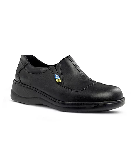 Ideal for women who work in industries where electronics, computers and software are made and operated, these smart slip-on safety shoes feature lightweight and soft Cookie Comfort Arch support. Combined with CSA Grade 1 steel toes, these shoes have supportive insoles and antistatic outsoles.