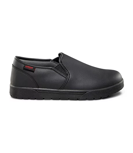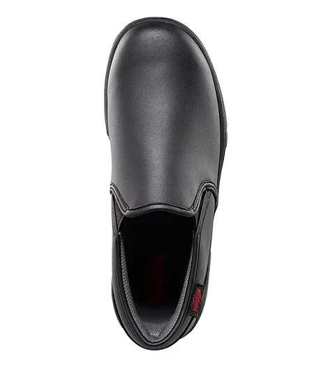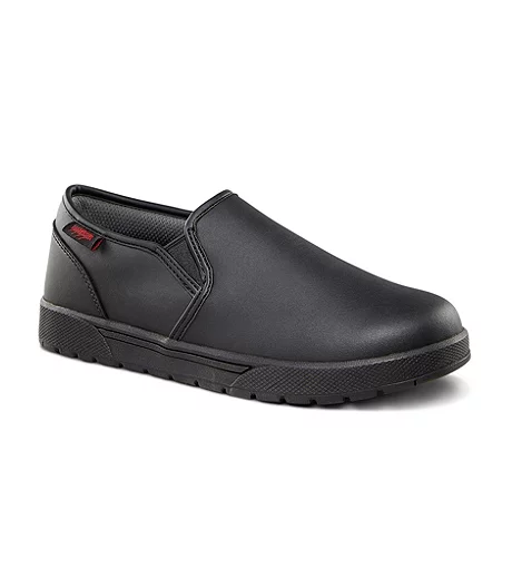 These Aggressor slip-on work shoes feature anti-slip rubber outsoles to help you grip floors in greasy or wet facilities. Our FRESHTECH® technology keeps your feet feeling fresh all day long. The shoes have elastic gussets that make them easy to slip on and pull off.