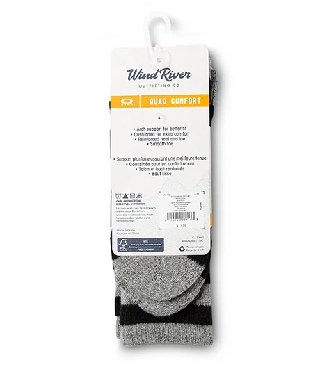 Make your trips into the wilderness more comfortable wearing our WindRiver Lightweight hiker socks. They have smooth toe seams, supportive arch panels and Quad Comfort® cushioned soles.