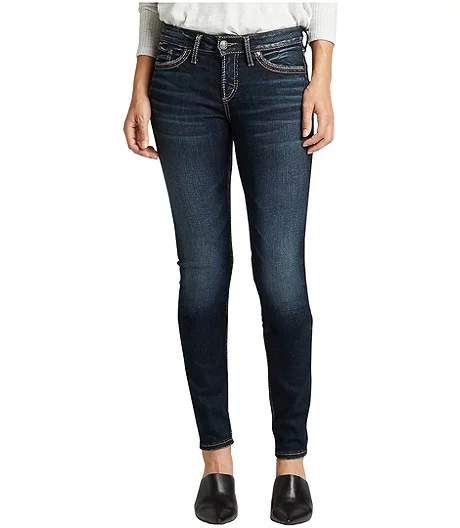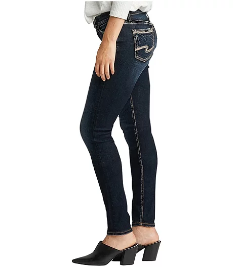 Silver Jeans’ go-to curvy fit, Suki is consciously designed to play up all your best assets with unique shape-enhancing details for the perfect hourglass silhouette. It features a classic mid rise with the perfect front-to-back proportion and an extreme contoured waistband that hits right where you’re curviest to prevent gapping. Finished with a dark indigo rinse and thick contrast stitching with metallic details on the back pockets.