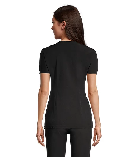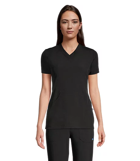 From Scrubletics, this solid-colour scrub top presents a professional profile. Darts at the back waist add shaping and plenty of stretch gives you greater mobility at work. This scrub top has a roomy kangaroo pocket and an extra front pocket for your small essentials.